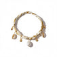 I This cream colored neckwrap features a stunning mother of pearl centerpiece and coastal charms. Enhance your outfit with the natural beauty of the sea. Perfect for beachgoers, sea lovers, and anyone looking for a touch of elegance.
